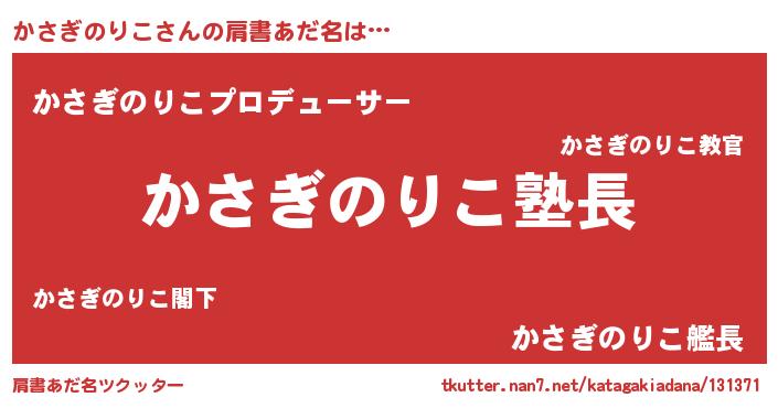 | 男性向けラノベタイトル風あだ名 | 『かさぎのりこの嫁は女の子じゃないと思った?』 |