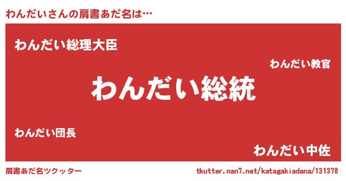 | 意味不明あだ名 | 『自称わんだい』『わんだいフォーエバー』 |