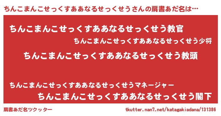 | 意味不明あだ名 | 『永久保存ちんこまんこせっくすああなるせっくせう』 |