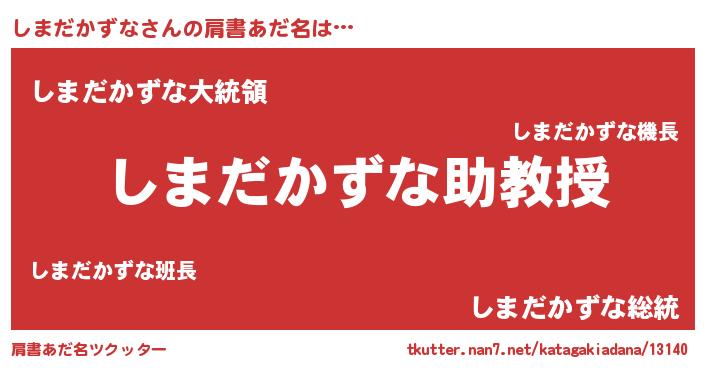 | 男性向けラノベタイトル風あだ名 | 『ノーゲーム・ノーシマダカズナ』 |