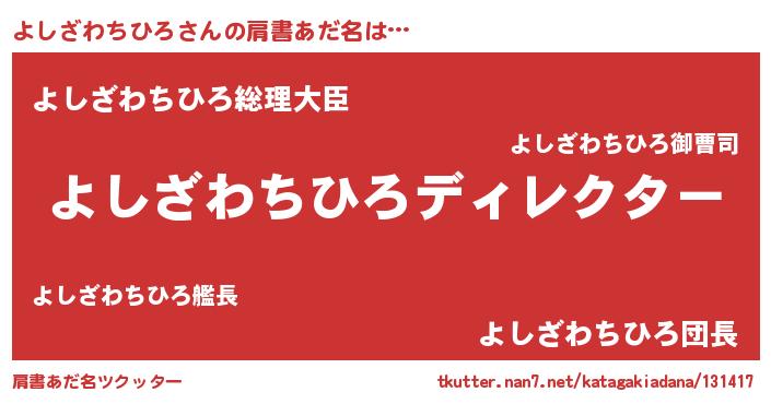 | 男性向けラノベタイトル風あだ名 | 『よしざわちひろに滅ぼされるだけの簡単なお仕事です』 |