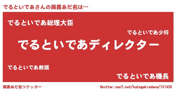 | 男性向けラノベタイトル風あだ名 | 『はたらくでるといであさま!』 |