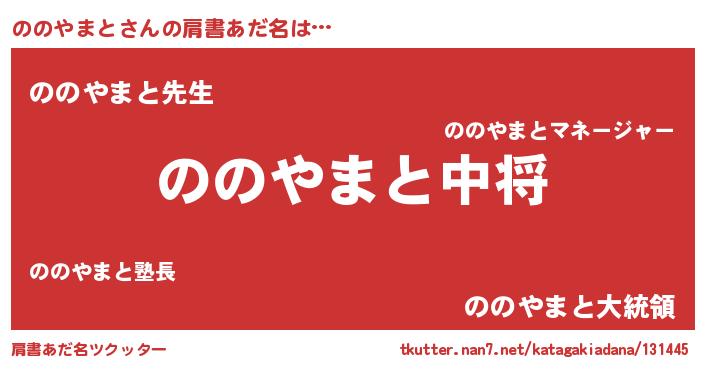 | 男性向けラノベタイトル風あだ名 | 『ノノヤマトスレイヤー』 |
