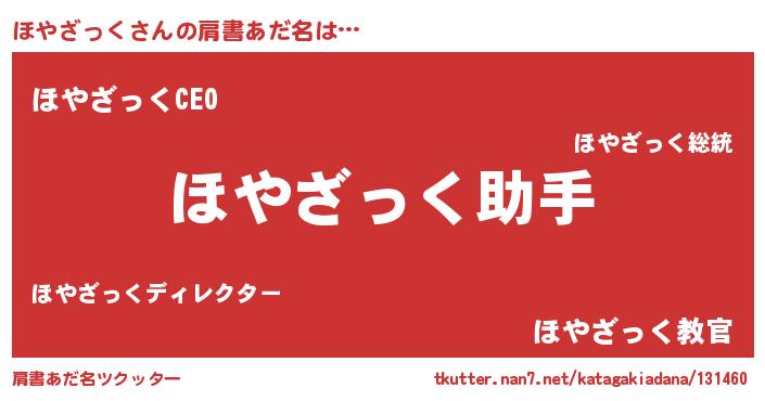 | ヘコむあだ名 | 『ほやにゅー』『ほやざっく(笑)』 |