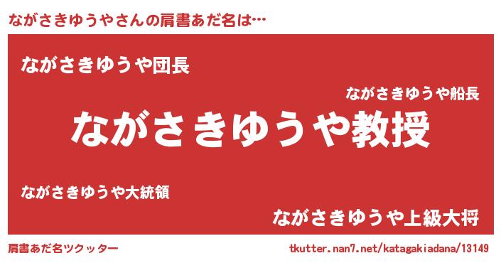 | 男性向けラノベタイトル風あだ名 | 『ノーゲーム・ノーナガサキユウヤ』 |