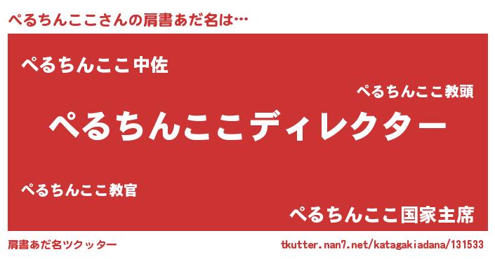 | 男性向けラノベタイトル風あだ名 | 『ぺるちんここに滅ぼされるだけの簡単なお仕事です』 |
