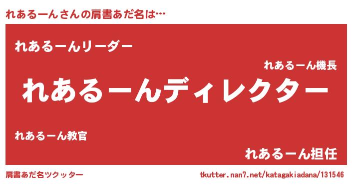 | 可愛いあだ名 | 『れっあぃー』『れあるーんママ』 |