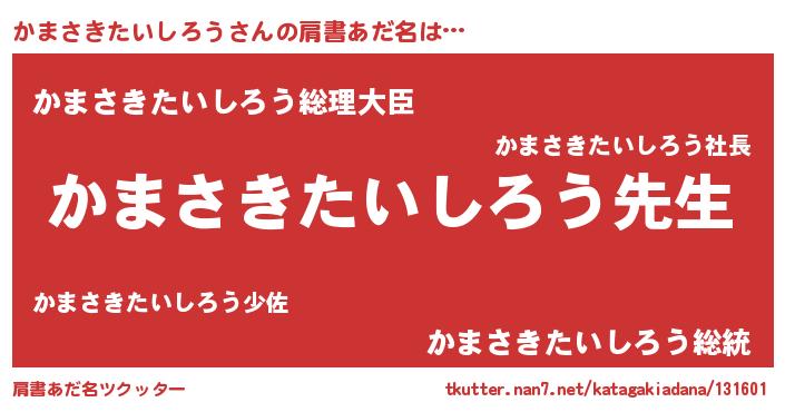 | 意味不明あだ名 | 『永久保存かまさきたいしろう』 |