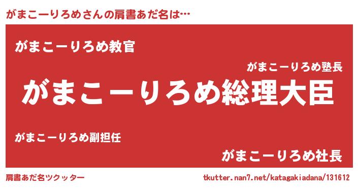 | 欧米人風あだ名 | 『がまこーりろめクリステル』 |