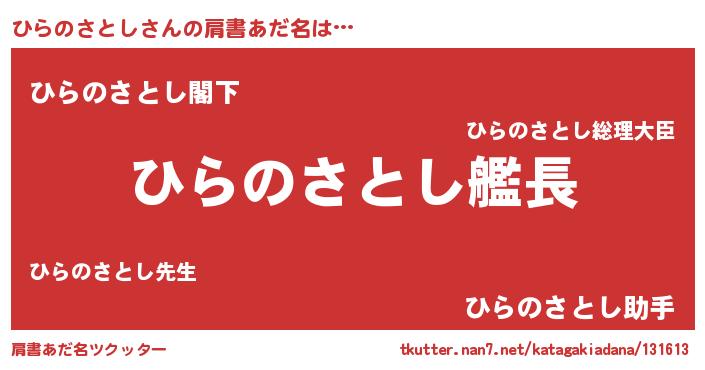 | 女子向けラノベタイトル風あだ名 | 『シンデレラひらのさとし家の靴箱館』 |