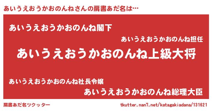 | 男性向けラノベタイトル風あだ名 | 『アイウエオウカオノンネスレイヤー』 |