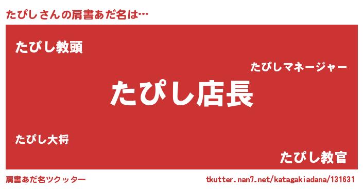 | 意味不明あだ名 | 『ペロリンたぴし』『永久保存たぴし』 |