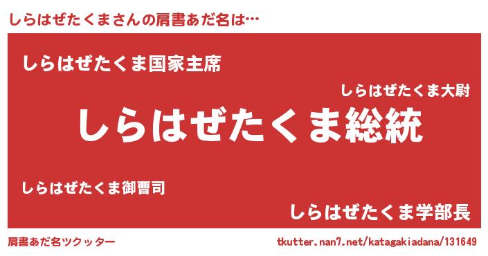 | 男性向けラノベタイトル風あだ名 | 『魔法科高校のしらはぜたくま』 |