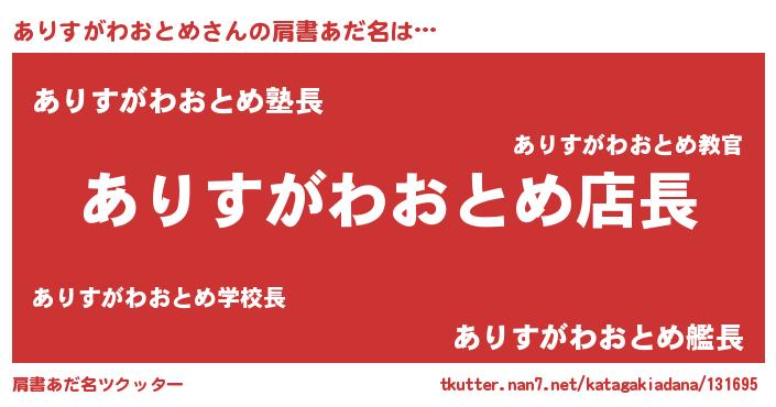 | 男性向けラノベタイトル風あだ名 | 『アリスガワオトメアートオンライン』 |