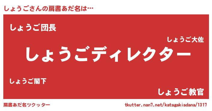 | 意味不明あだ名 | 『とにかく怪しいしょうご』 |