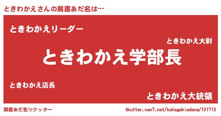 | ヘコむあだ名 | 『ときぷりん』『なまこ酢』 |