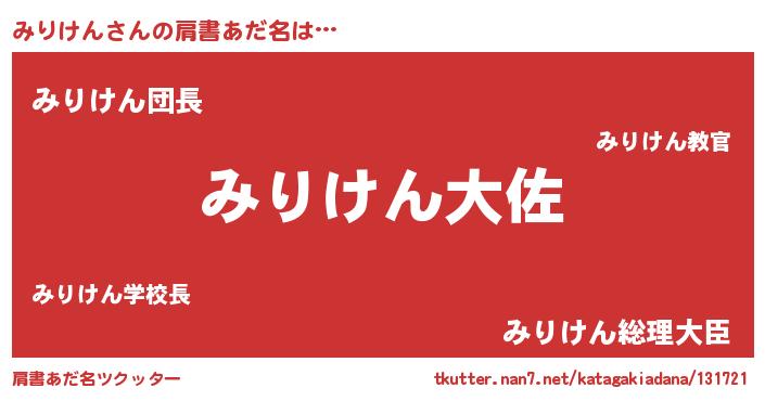 | 胡散臭い通販商品みたいなあだ名 | 『信頼と実績のサプリメント…その名も「みりけん」』 |
