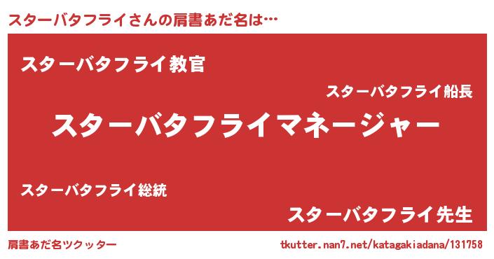 | 意味不明あだ名 | 『住所不定無職スターバタフライ(1歳)』 |