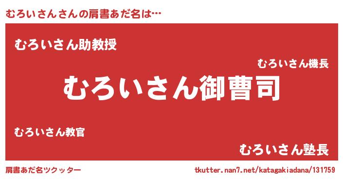 | ヘコむあだ名 | 『むろっふぃ~』『むろを』『つくし』 |