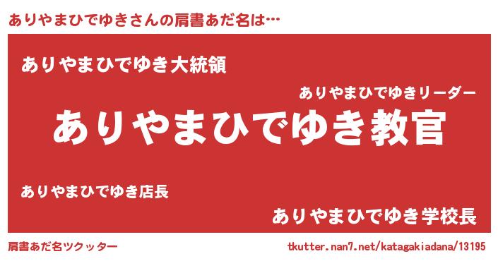 | 男性向けラノベタイトル風あだ名 | 『この素晴らしい世界にありやまひでゆきを!』 |