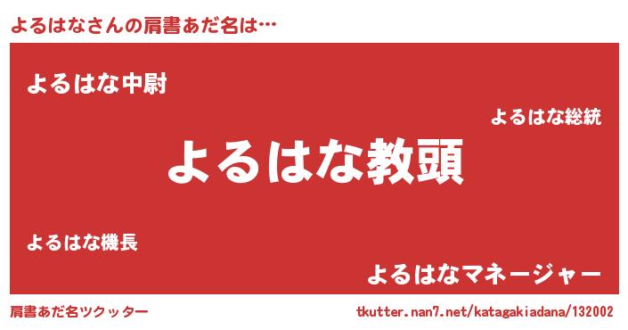 | 意味不明あだ名 | 『永久保存よるはな』『自称よるはな』 |
