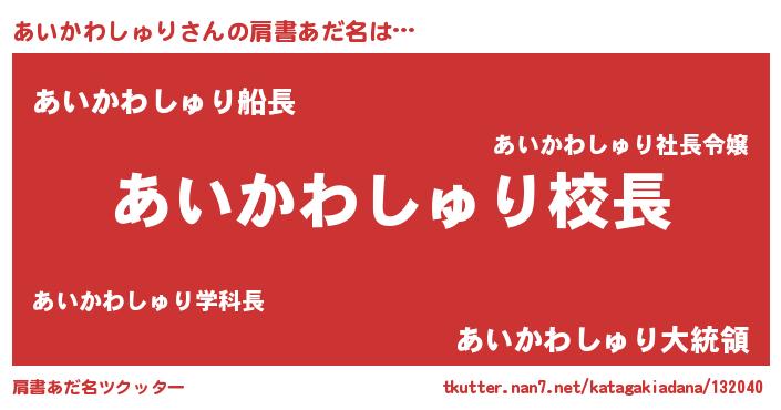 | 意味不明あだ名 | 『永久保存あいかわしゅり』 |