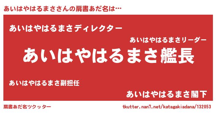 | 意味不明あだ名 | 『自称あいはやはるまさ』 |