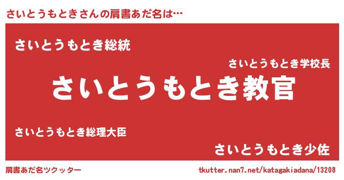 | 意味不明あだ名 | 『住所不定無職さいとうもとき(40歳)』 |