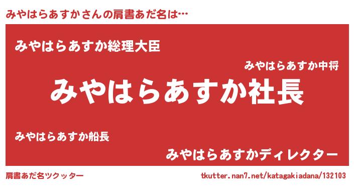 | ヘコむあだ名 | 『みやにー』『豆乳』『みや太郎』 |