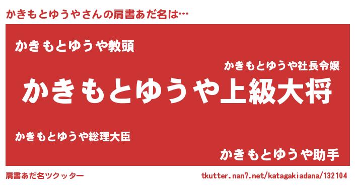 | 男性向けラノベタイトル風あだ名 | 『かきもとゆうや~年齢イコール彼女いない歴の魔法使い~』 |