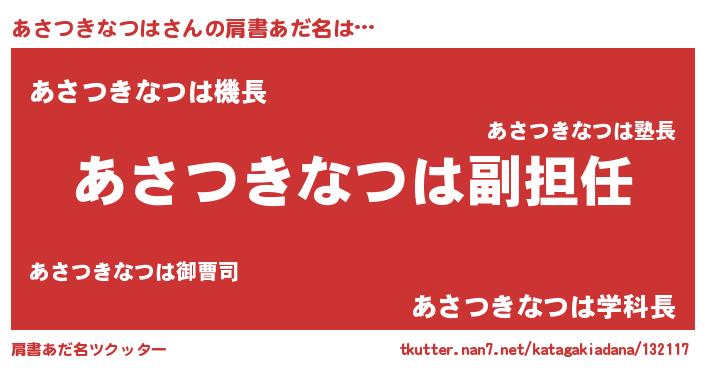 | 意味不明あだ名 | 『永久保存あさつきなつは』 |
