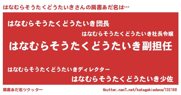 | 意味不明あだ名 | 『永久保存はなむらそうたくどうたいき』 |