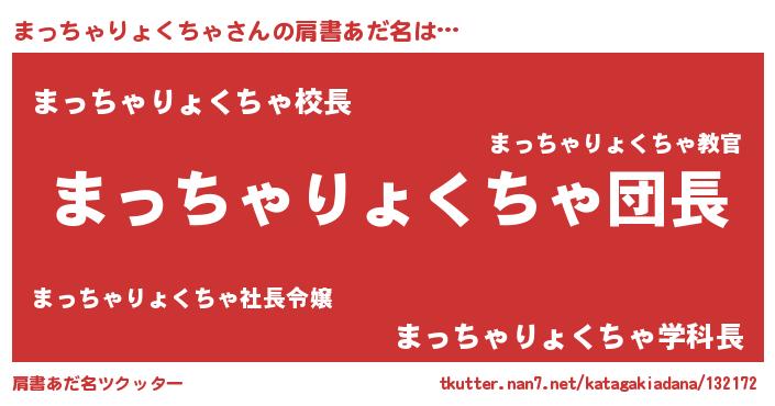 | 男性向けラノベタイトル風あだ名 | 『まっちゃりょくちゃの嫁は女の子じゃないと思った?』 |