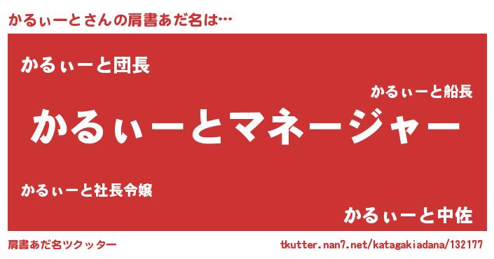 | ヘコむあだ名 | 『かるお』『かるにー』『レバニラ』 |