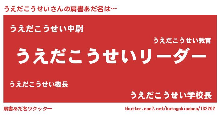 | 女子向けラノベタイトル風あだ名 | 『うえだこうせいの卵を拾いまして』 |
