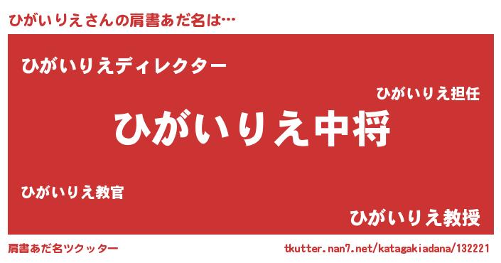 | ヘコむあだ名 | 『ひがいりえ(震え声)』『ひがにゅー』 |