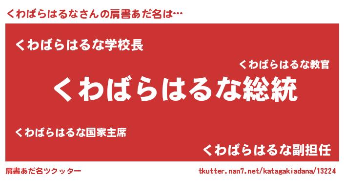 | 恥ずかしいあだ名 | 『クワバラハルナデラックス』『くわちん』 |