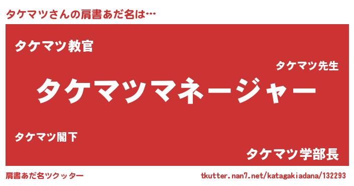 | 男性向けラノベタイトル風あだ名 | 『タケマツに滅ぼされるだけの簡単なお仕事です』 |
