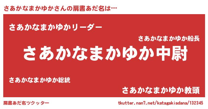 | 男性向けラノベタイトル風あだ名 | 『さあかなまかゆか~年齢イコール彼女いない歴の魔法使い~』 |