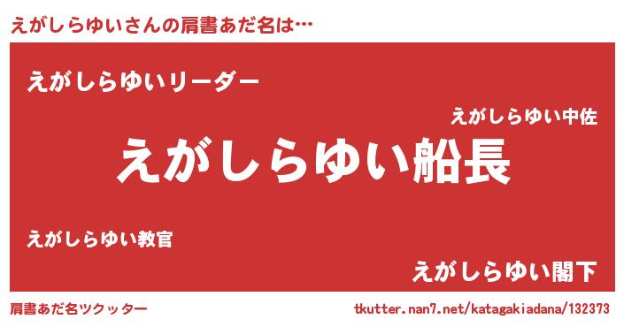 | 欧米人風あだ名 | 『えがしらゆい・ステッグマイヤー』 |