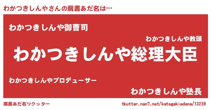 | 女子向けラノベタイトル風あだ名 | 『わかつきしんやの雑貨屋さん』 |