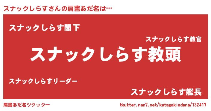 | ヘコむあだ名 | 『スナックしらす(笑)』『スナ太郎』 |