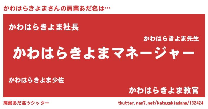 | ヘコむあだ名 | 『かわにー』『かわはらきよま(小並感)』 |