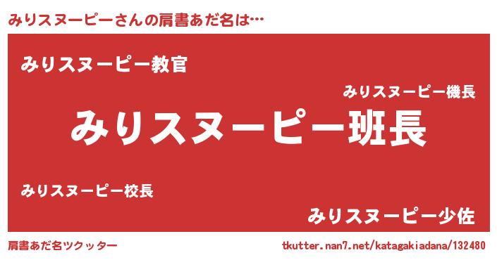 | 男性向けラノベタイトル風あだ名 | 『みりスヌーピーの嫁は女の子じゃないと思った?』 |