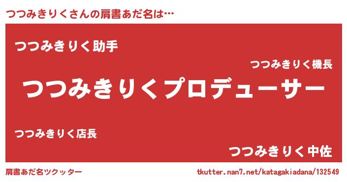 | 男性向けラノベタイトル風あだ名 | 『つつみきりくに滅ぼされるだけの簡単なお仕事です』 |