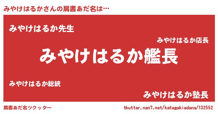 | ヘコむあだ名 | 『みやけはるか(笑)』『みやお』 |