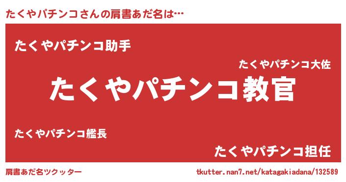 | ヒーロー風カッコイイあだ名 | 『仮面タクダー』『ネオタクヤパチンコ』 |