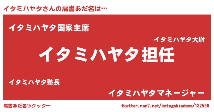 | 意味不明あだ名 | 『永久保存イタミハヤタ』 |