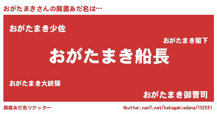 | 欧米人風あだ名 | 『おがたまき・ステッグマイヤー』 |