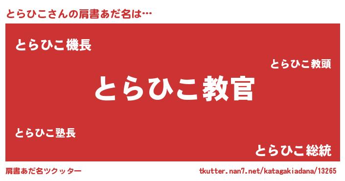 | ヘコむあだ名 | 『とらひこ(笑)』『とらぷりん』 |
